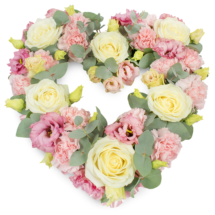 Honor the memory of a loved one with our timeless tribute arrangement. This bouquet’s beauty is found in its careful curation of hand-selected, fresh flowers. The classic combination of elegant white roses, soft pink carnations, and charming pink lisianthus pairs beautifully with invigorating eucalyptus leaves to create a design that both soothes and inspires.
